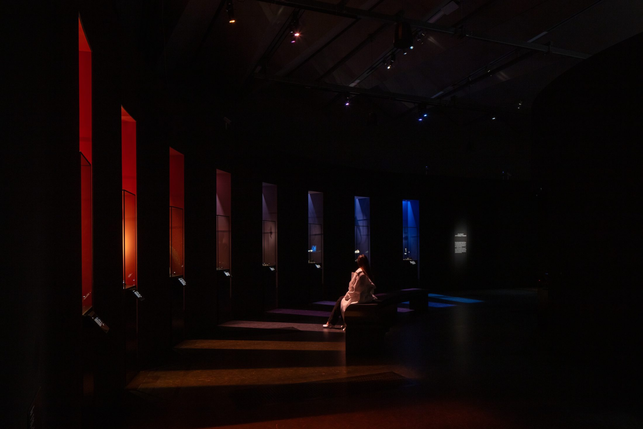 His approach was shaped by a personal interest in sacred spaces—their light, form, scale, and stillness. "I wanted to create a series of spaces that gently shift the pace of the visitor,” he explains, "so that by the time they have made their first steps into the exhibition, they!ve entered a quieter state—more open to sensing time, memory and meaning in the pieces.”