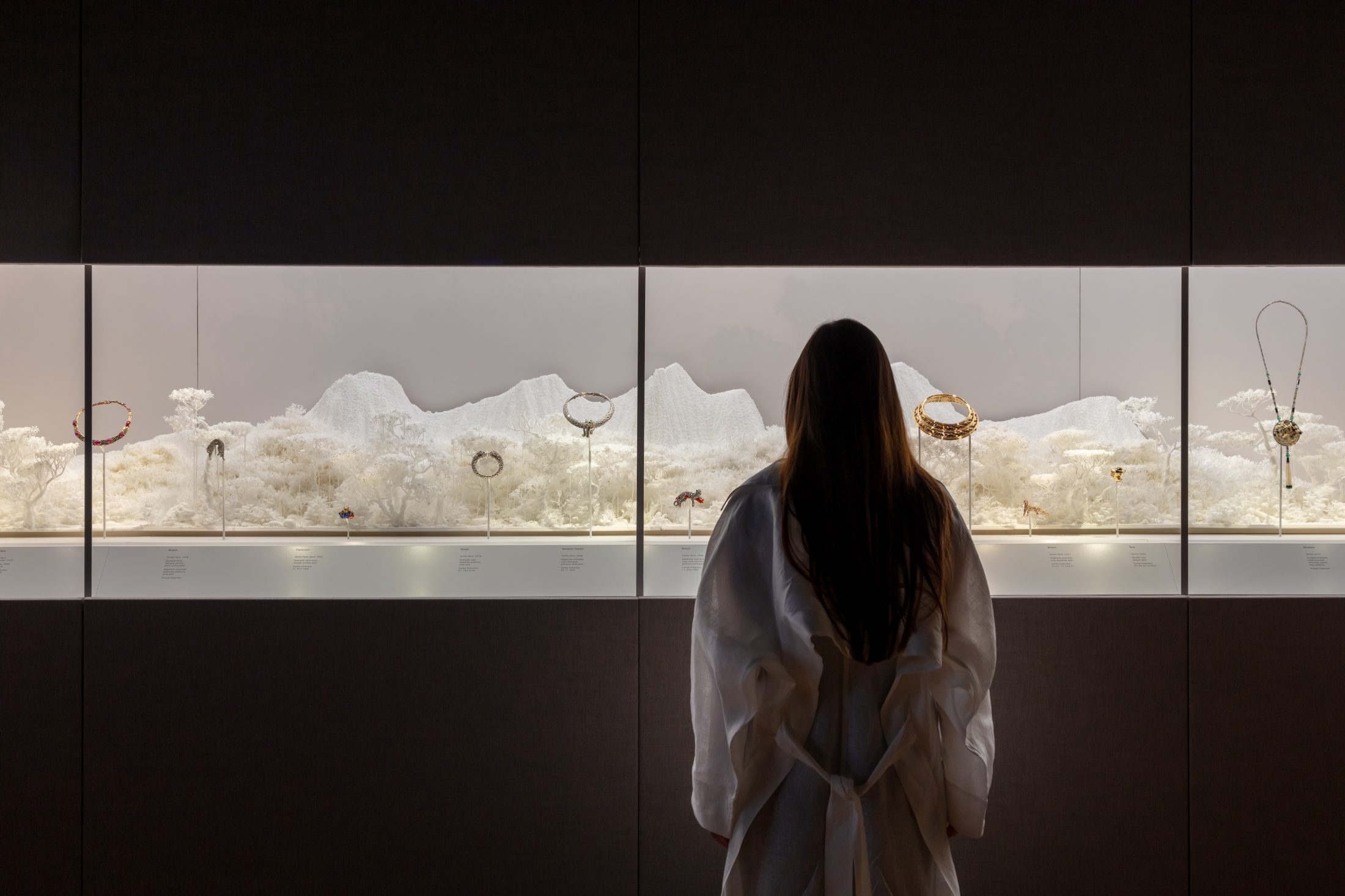 As visitors move through the exhibition, they pass through a sequence of carefully orchestrated environments—each offering a subtle shift in atmosphere. One opens to a forest scene at dawn, offering space to pause and reflect. Another evokes a reimagined cosmos in the form of an orrery around the Manchester Tiara illuminated by candlelight. A gently curving wall is punctuated by coloured light filtering through niches, casting soft pools across the floor. Within each niche is a jewel that traces Cartier!s long history of interaction with royalty, from the British crown to the Maharajas of India. A spectrum of colour moves across the space—from the twilight of Windsor to the warm dusk of Delhi. The atmosphere is held in suspension by Saans Lo ("Breathe”), an ambient instrumental composition by Arooj Aftab that invites stillness, contemplation and the quiet presence of forgotten voices. A circular hall recalls the memory of a grand gathering of tiaras at a ball, shimmering in time with the gentle andante of Shostakovich!s Piano Concerto No. 2.
